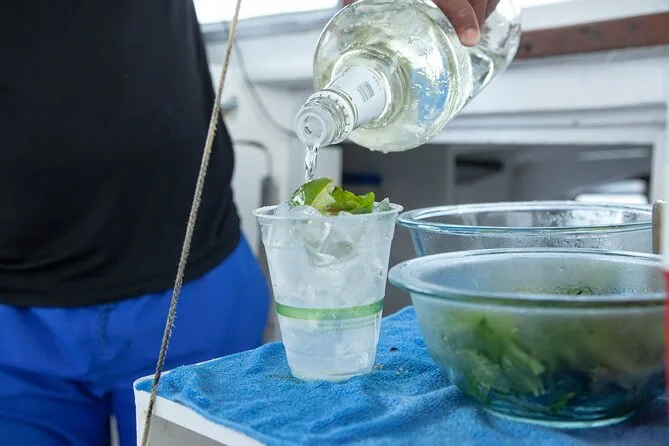 Im Preis sind kostenloses Parken an der Marina, Schnorchelausrüstung, Schwimmwesten, Getränke (inklusive lokalem Rum), ein leichtes Mittagessen und Duschen an der Marina enthalten.
