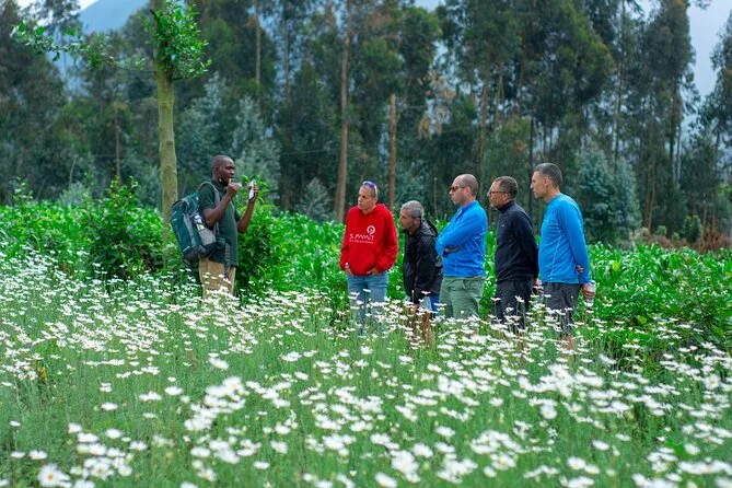 Dein Tag beinhaltet Wasserflaschen während der gesamten geführten Wanderung und ein frisches Mittagessen am Fuß des Bisoke Vulkans nach dem Trek – plus eine kurze Massage vom Team des Volcanoes Resto-Bar vor der Rückkehr.