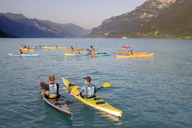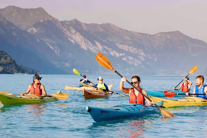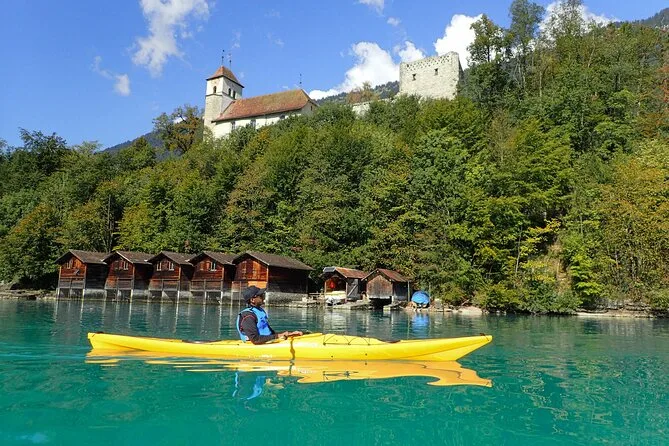 Dein Tag beinhaltet hochwertige Seekajaks und Paddel für den Brienzersee, professionelle Anleitung von deinem lokalen Guide Jonas (oder einem ebenso sympathischen Ersatz), viel Zeit zum Erkunden der Klippen und des Schlosses Ringgenberg in einer kleinen Gruppe von bis zu sechs Personen – plus ein digitales Foto-Paket, damit du dich ganz aufs Paddeln konzentrieren kannst.