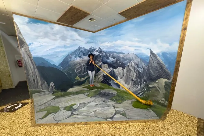 Als Erstes fiel mir dieser wilde Farbtupfer durch die Scheibe auf – als hätte jemand alle Buntstifte der Schweiz an die Wände gekippt. Gerade waren wir dem Nieselregen entkommen (typisches Interlaken-Wetter, ehrlich gesagt) und standen plötzlich im Swiss Selfie Museum, die Schuhe quietschten auf dem glänzenden Boden. Eine Gruppe Teenager kicherte neben einer riesigen, bemalten Kuh – so ein 3D-Wandbild, das aussieht, als würde es gleich aus dem Bild in dein Foto springen. Unsere Guide Lara winkte uns zu und meinte etwas von „unseren inneren Käseliebhaber finden“, was mich zum Lachen brachte. Ob ich meinen gefunden habe, weiß ich nicht, aber ein Foto mit einem Berg aus bemalten Schokoriegeln hab ich definitiv gemacht.
