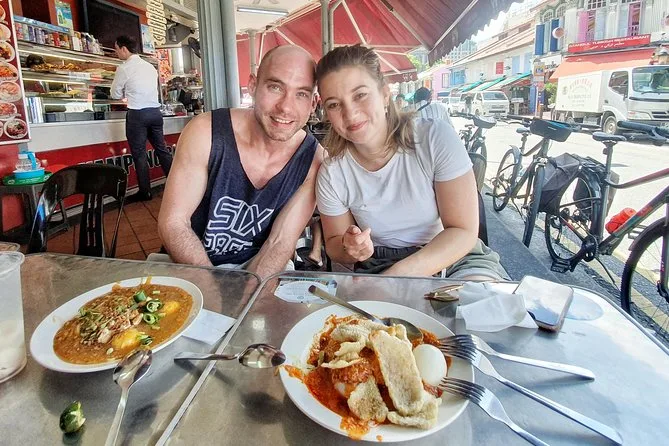 Auf dem Rad probierst du dich durch Chinatown, Little India und Kampong Glam – von Hainanese Chicken Rice und Karottenkuchen über malaiische Curry Puffs und Gado Gado bis hin zu indischem Roti und Thosai. Freu dich auf viel Spaß mit deinem lokalen Guide, kurze Fotostopps oder Pausen bei Regen (Ponchos inklusive) und Geschichten, die dir lange im Gedächtnis bleiben.
