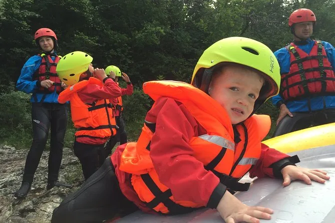 Schon am Treffpunkt spürt man die Vorfreude – Kinder zupfen an den Neoprenanzügen, Eltern schießen schnelle Fotos. Unser Guide Luka verteilte Ausrüstung, die tatsächlich den Kleinen passte (nicht selbstverständlich), und sorgte dafür, dass sich alle wohlfühlten, bevor wir in den Van stiegen. Die Fahrt zum Fluss dauerte nur etwa zehn Minuten, vorbei an blühenden Wiesen und einer Bäckerei, die nach frischem Brot duftete. Ich erinnere mich, wie mein Jüngster fragte, ob wir nicht kurz für ein Gebäck anhalten könnten – vielleicht beim nächsten Mal.