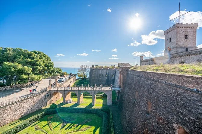 Dein Tag umfasst eine geführte Tour durch Barcelonas Altstadt und den Stadtteil Raval, den Eintritt zur Burg Montjuïc mit spannenden Geschichten vom lokalen Guide, Hin- und Rückfahrkarten für die Standseilbahn und die Montjuïc-Seilbahn mit Blick über die Skyline – alles in einer kleinen Gruppe, damit du nicht in der Menge untergehst.
