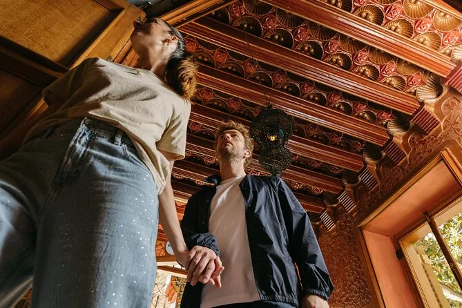 Ich hatte nicht erwartet, dass die Räume so… lebendig wirken. Vielleicht trifft das Wort es nicht ganz, aber man kann sich gut vorstellen, wie hier vor hundert Jahren jemand den Sommer verbracht hat. Der Blick aus dem Obergeschoss in den Garten ist grün und von Sonnenflecken durchzogen – richtig ruhig, obwohl unten Leute unterwegs sind. Einmal versuchte mein Freund, „trencadís“ auszusprechen (diese berühmte Mosaiktechnik), und unser Guide grinste nur und sagte: „Passt schon.“ Solche kleinen Momente – ein Lachen mit Fremden – ließen es weniger wie ein Museum und mehr wie einen Besuch in einem besonderen Zuhause wirken.
