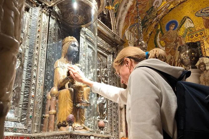 Dein Tag beinhaltet die Hin- und Rückfahrt mit dem Zug ab Plaça d’Espanya in Barcelona sowie die Bergauffahrt mit der Seilbahn und die Abfahrt mit der Zahnradbahn. Du nimmst an einer geführten Wanderung teil, bei der alle Eintrittsgelder inklusive sind – inklusive bevorzugtem Zugang zur Basilika von Montserrat und dem Thron der Schwarzen Madonna. Außerdem gibt es eine Pause auf einem lokalen Bauernmarkt mit Verkostungen, bevor es zurück in die Stadt geht.