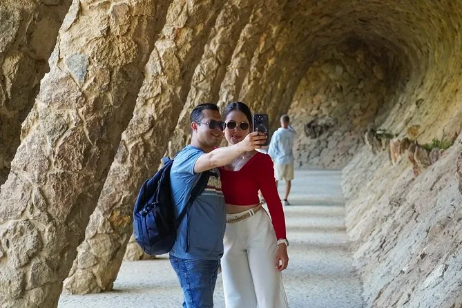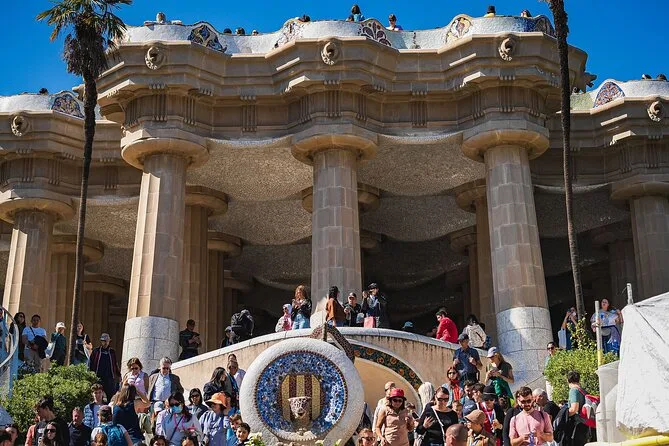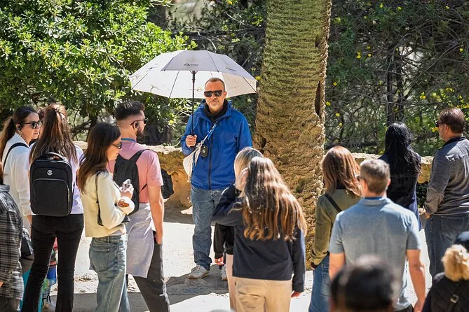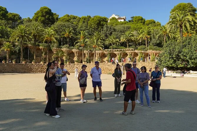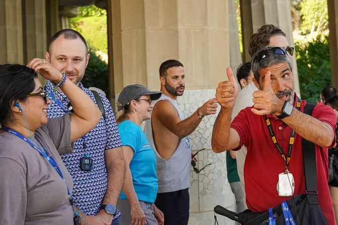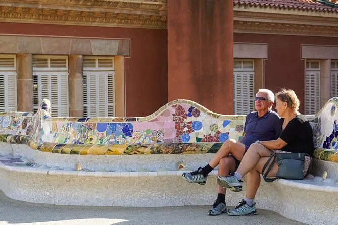 Dein Tag beinhaltet Tickets ohne Anstehen für den Park Güell, einen zertifizierten lokalen Guide aus Barcelona, der dir beim etwa einstündigen Spaziergang durch Mosaikwege und Gärten spannende Geschichten erzählt, sowie Headsets, damit du nichts verpasst – auch wenn du mal von den Farben abgelenkt bist.