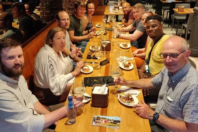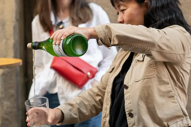 Die Tour umfasst fünf Weinbegleitungen (rot oder weiß) plus lokale Getränke wie Apfelwein.