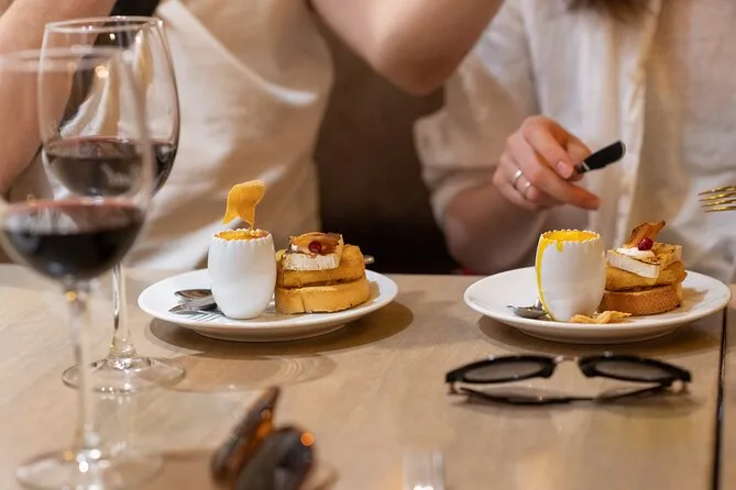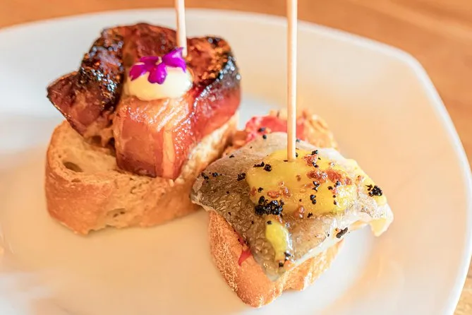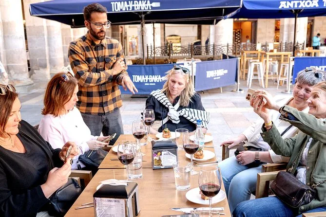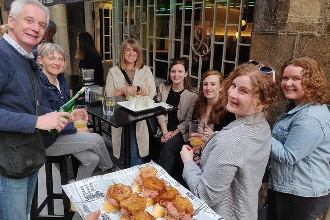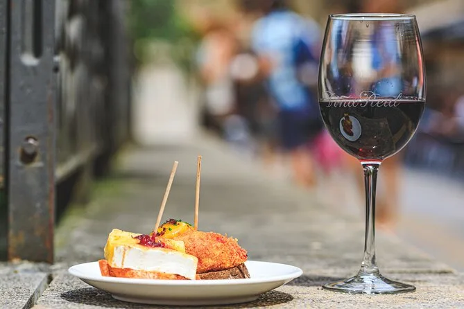 Dein Abend beinhaltet stilles Wasser, fünf Weinbegleitungen (rot oder weiß) sowie lokale Getränke wie Apfelwein oder Cocktails, ausreichend Pintxos für ein volles Abendessen und einen englischsprachigen baskischen Guide, der alles – von Route bis Menü – auf deine Gruppe abstimmt.