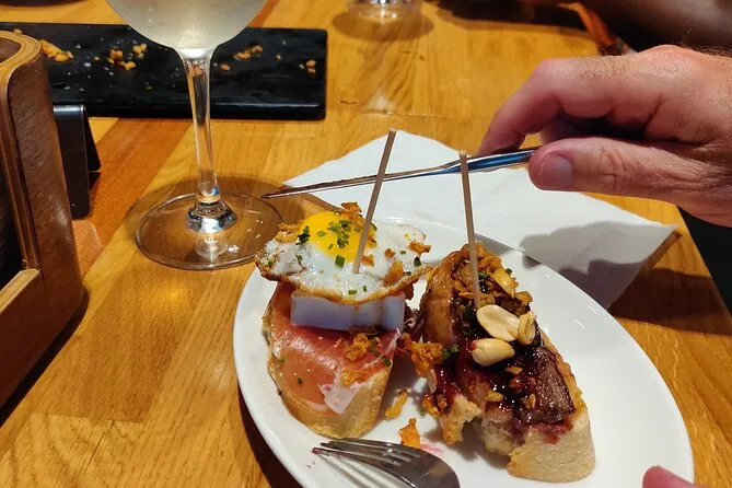 Erkunde Bilbaos lebendige Altstadt mit einem echten Baske, der jede gute Pintxos-Bar kennt. Genieße klassische Häppchen und fünf verschiedene lokale Weine (plus Apfelwein), lausche spannenden Geschichten zur baskischen Sprache und Geschichte und hab dabei jede Menge Spaß. Das fühlt sich eher an wie ein Abend mit Freunden als eine klassische Tour.
