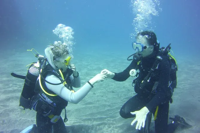 Dein Tag beinhaltet die Abholung und Rückfahrt zum Hotel im Umkreis von 10 km um Costa Adeje, die komplette SCUBA-Ausrüstung, Wasserflaschen zum Nachtrinken nach dem Salzwasser, professionelle Anleitung durch einen lokalen Guide während Praxis und Freiwassertauchgang sowie alle Gebühren und Steuern – so gibt es keine Überraschungen, wenn du bereit bist, etwas Neues zu wagen.