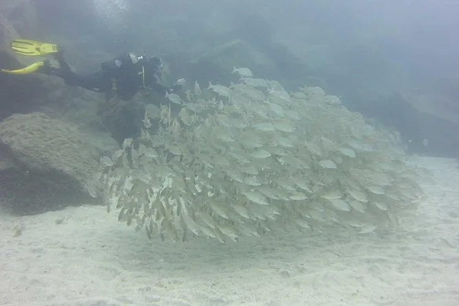 Die gesamte Session dauert etwa 3 bis 4 Stunden, inklusive Einweisung und Tauchzeit.