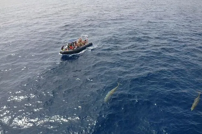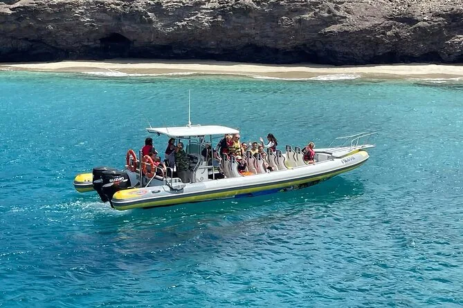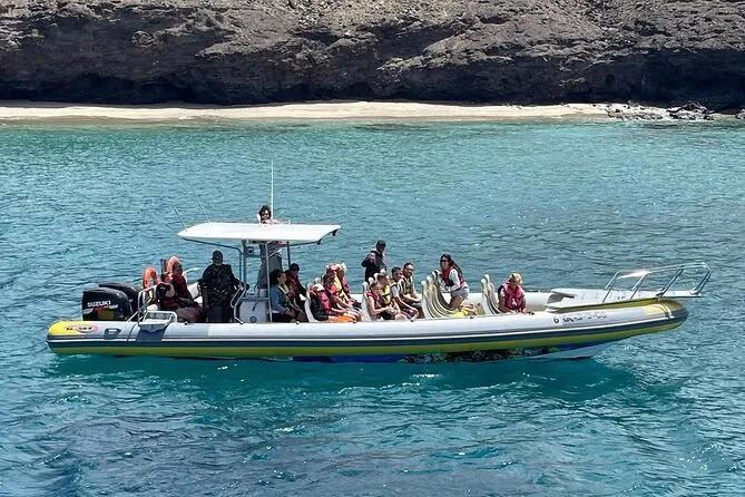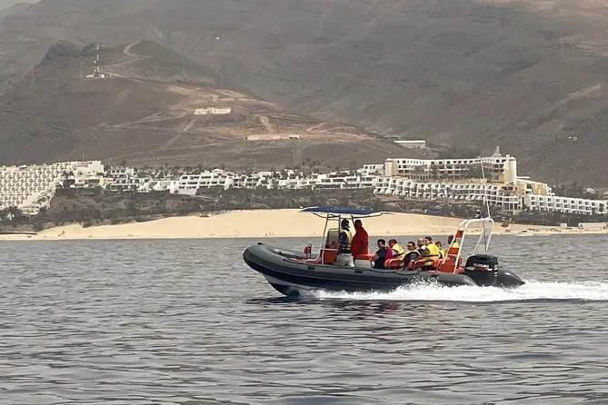 Mit dem Speedboot entlang Fuerteventuras rauer Küste auf Delfin- und Walsuche – dann ab ins Wasser zum Schnorcheln