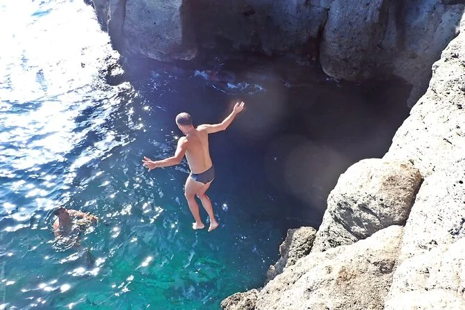 Die Klippen leuchteten fast weiß im Kontrast zum blauen Wasser – unser Guide erzählte etwas über vulkanische Gesteinsschichten, aber ich war zu sehr damit beschäftigt, kleine Krabben über die Felsen huschen zu sehen. Wir glitten in eine der Höhlen hinein (ein Lachen hallte wider) und für einen Moment war es nur dunkel und kühl, abgesehen von diesem eigenartigen Mineralgeruch, den man in alten Steinhöhlen kennt. Zwischendurch bot er uns an, von einer niedrigen Kante ins Meer zu springen. Einige sprangen ohne zu zögern; ich brauchte einen Moment, aber sprang dann doch – mein Herz raste, aber es fühlte sich einfach großartig an.