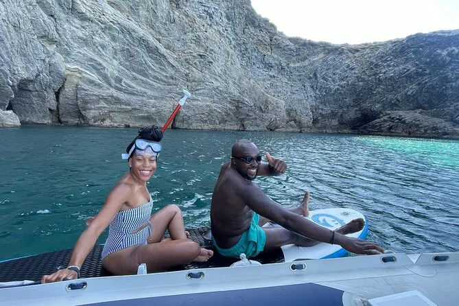 Dein Tag umfasst die private Nutzung eines 35-Fuß-Boots mit Toilette, Treibstoff inklusive, zwei Paddleboards und Schnorchelausrüstung vom lokalen Team – alles ab Cala Jondal mit Rückkehr nach Erkundung der Südküste Ibizas und Formentera. Bring dein eigenes Essen mit oder probiere eine Strandbar vor Ort; Flexibilität gehört dazu.