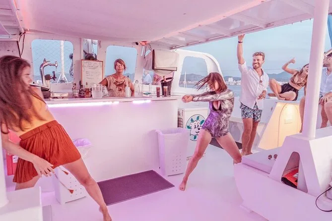 Dein Tag umfasst eine malerische Küstenfahrt vorbei an Ibizas berühmten Buchten Cala Bassa und Cala Comte; Stopps zum Schwimmen oder Schnorcheln (Ausrüstung inklusive); Spaß mit aufblasbaren Schwimmhilfen; ein entspanntes BBQ mit Hühnchen, Salat und Obst; dazu unbegrenzt Bier, Sangria, Softdrinks und Wasser an Bord, bevor es zurück zum Hafen geht.