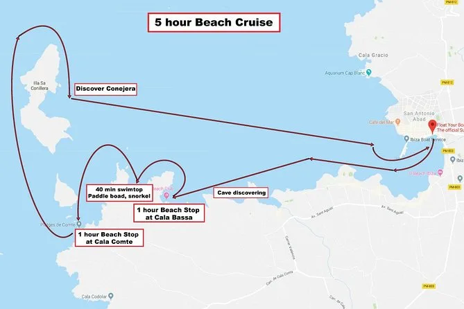 Die Tour dauert 6 Stunden entlang der Küste von Ibiza mit mehreren Stopps.