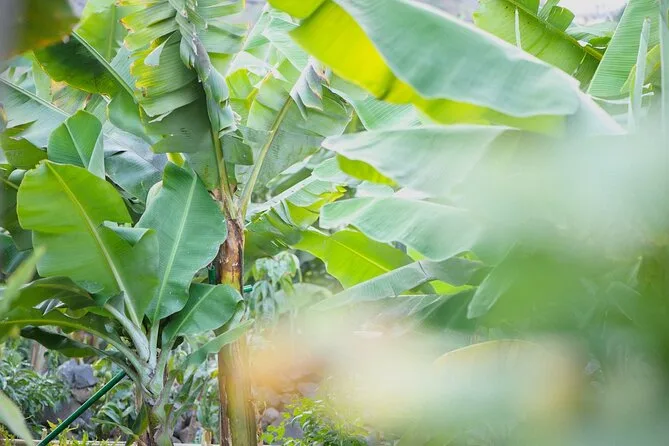 Du besuchst eine ökologische Farm mit Bananenplantage, Vieh, Obstgarten, eine restaurierte Gofio-Mühle mit Antiquitätensammlung und Aussichtspunkte.