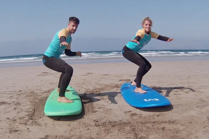 Das Wasser war frisch, aber nicht kalt, und nach ein paar Versuchen stand ich tatsächlich für ein paar Sekunden auf dem Brett. Die salzige Luft, das Lachen der anderen Gruppen – das machte richtig Spaß. Pablo gab immer wieder Tipps zwischen den Wellen, und zum Schluss konnte ich schon kleine Wellen alleine erwischen. Wir beendeten den Tag mit einem kurzen Abschluss am Strand, lachend und mit Sand bedeckt, bevor es zurück im Van ging. Vier Stunden vergingen wie im Flug.