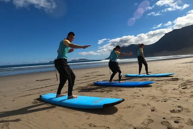Salzige Luft, Sand zwischen den Zehen – die Strände von Lanzarote sind morgens einfach magisch. Unser Surftag startete mit einer entspannten Fahrt im Van, die Fenster offen, um die frische Meeresbrise zu spüren. Unser Lehrer Pablo erzählte von den besten Surfspots der Insel und warum der Famara Beach sein Favorit ist, wenn der Wind stimmt. Möwen kreischten im Hintergrund, und ich war zwar ein bisschen nervös, aber vor allem voller Vorfreude.