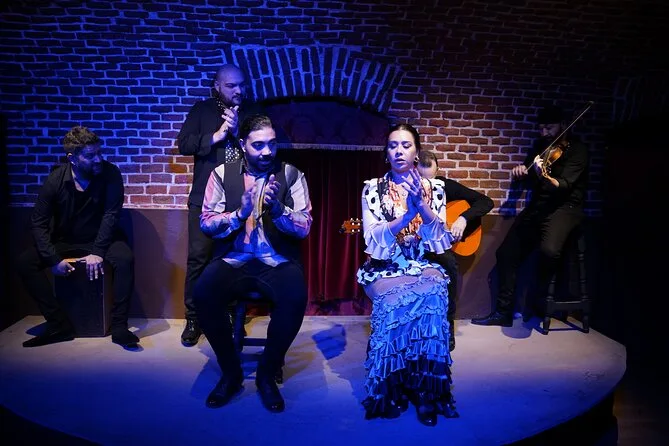 Du sitzt nur wenige Schritte von der Bühne der Essential Flamenco Show in Madrid entfernt – nah genug, um jeden Stampfer und Blick der Künstler zu sehen. Genieße dein inkludiertes Getränk, während jahrhundertealte Rhythmen den Raum füllen. Lachen, Gänsehaut und vielleicht ein paar unbeholfene Klatscher sind garantiert. Das hier ist mehr als eine Show – es bleibt lange im Herzen.