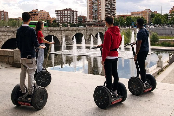 Auf dem Segway entlang von Madrid Río mit einem lokalen Guide, überquere historische Brücken wie den Puente de Segovia und halte an Aussichtspunkten mit Skyline-Blick. Freu dich auf ein kurzes Training, kleine Gruppen voller Spaß und Überraschungen – von Flussvögeln bis zu königlichen Bauwerken im Sonnenlicht. So entdeckst du Madrid entspannt und mit einer Prise Abenteuer.