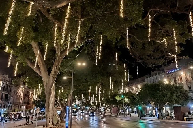 Zurück in der Stadt fuhren wir durch alte Fischerviertel, wo die Einheimischen noch gemütlich vor den Eckkneipen standen – hier gibt’s keinen Stress. Das kleine Auto lässt dich mitten im Geschehen sein, nicht nur vorbeifahren. Wir kamen am Parque de Málaga vorbei, wo nachts der Orangenblüten-Duft besonders intensiv ist, und fuhren an der La Manquita Kathedrale vorbei, deren Stein unter den Laternen fast zu leuchten scheint. Im Soho-Viertel gibt es coole Street Art, die man leicht übersieht – unser Guide bremste extra ab, damit wir ein paar versteckte Wandgemälde entdecken konnten.