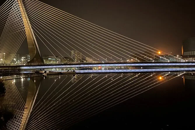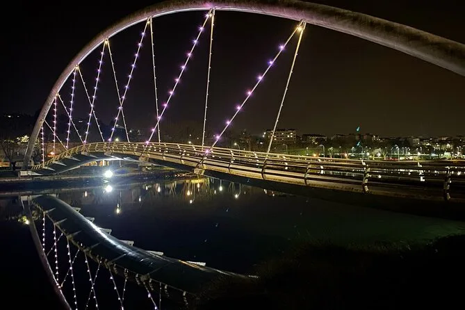 Spaziere entlang des Lérez-Flusses, während die Brücken über dir leuchten. Lausche den Geschichten deines lokalen Guides, halte an Aussichtspunkten mit funkelnden Stadtlichtern und erkunde mittelalterliche Mauern in einem Freilichtmuseum. Diese Tour verbindet Geschichte, ruhige Momente am Wasser und ein paar Lacher unter dem Sternenhimmel.