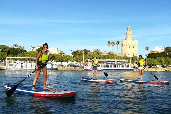 Dein Tag beinhaltet die komplette Paddle Surf Ausrüstung – Board, Paddel, Schwimmweste – sowie Zugang zu Umkleiden mit Schließfächern. Ein lokaler Guide begleitet dich, erzählt spannende Geschichten, während ihr an Triana, Torre del Oro, der Stierkampfarena und der Kathedrale vorbeipaddelt. Außerdem bekommst du digitale Fotos und Videos von deinem Ausflug auf dem Fluss.