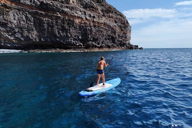 Du paddelst ganz in deinem Tempo entlang der Südküste La Gomeras, umgeben von dramatischen Klippen und einheimischer Tierwelt. Ob du SUP-Neuling bist oder einfach ruhige Momente auf dem Wasser suchst – diese Vermietung schenkt dir volle Freiheit, ganz ohne Guide.