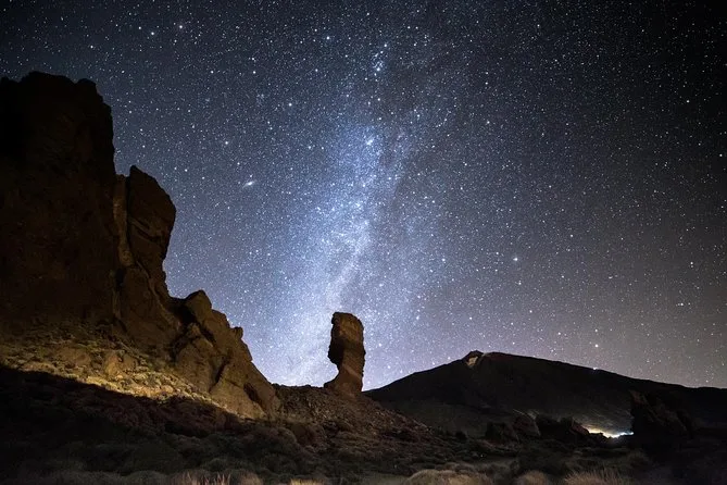 Dein Abend beinhaltet die Abholung in der Nähe deines Hotels auf Teneriffa, den Transport in einem klimatisierten Fahrzeug mit Live-Kommentar deines lokalen Guides, Wasserflaschen unterwegs, ein komplettes Abendessen im höchsten Restaurant des Teide (mit Optionen für spezielle Ernährungsbedürfnisse), die Nutzung professioneller Teleskope zum Sterneschauen sowie alle lokalen Steuern – bevor es nachts zurück durch die Kiefernwälder geht.