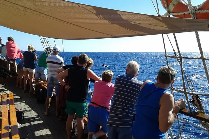 „Hast du gerade die Flosse gesehen?“ rief jemand, und für einen Moment dachte ich, ich hätte sie verpasst – doch dann tauchte der Pilotwal wieder auf, ruhig und gemächlich, direkt neben unserem alten Holzschiff. Die Peter Pan (ja, so heißt das Schiff wirklich) knarrte leise, während wir langsam von Los Cristianos ablegten. Unsere Reiseleiterin – ich glaube, sie hieß Marta? – erklärte, wie man Delfine an ihren Spritzern erkennt, aber ehrlich gesagt war ich noch ganz gefangen vom salzigen Duft und dem warmen Holz unter meinen Füßen. Auf so einer echten portugiesischen Schaluppe fühlt man sich sofort wie in einem alten Abenteuerroman.