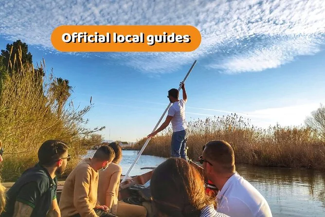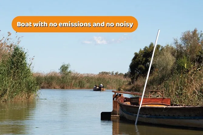 Du gleitest mit einem Elektroboot über den Albufera-See und entdeckst heimische Vögel wie Reiher und Silberreiher sowie Reisfelder und Schilfrohre.
