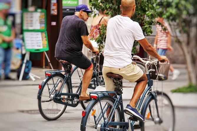 Dann wechselten wir aufs Rad nahe dem Turia-Park. Die Brise war genau richtig – nicht zu heiß, nicht zu kühl – und wir fuhren entspannt an Joggern und spielenden Kindern vorbei. Zwischendurch machten wir Halt unter einem Orangenbaum (ja, die wachsen hier wirklich überall) für eine kleine Trinkpause. Mein persönliches Highlight? Das Posen vor den futuristischen Gebäuden der Ciudad de las Artes y las Ciencias, während unser Fotograf genau den perfekten „Urlaubsstimmung“-Moment einfing. Wenn du lieber in einem Café verweilen oder eine Weinpause einlegen möchtest, sag einfach Bescheid – sie passen das Tempo gerne an. Es fühlte sich eher an wie ein Treffen mit einem alten Freund als eine klassische Tour.