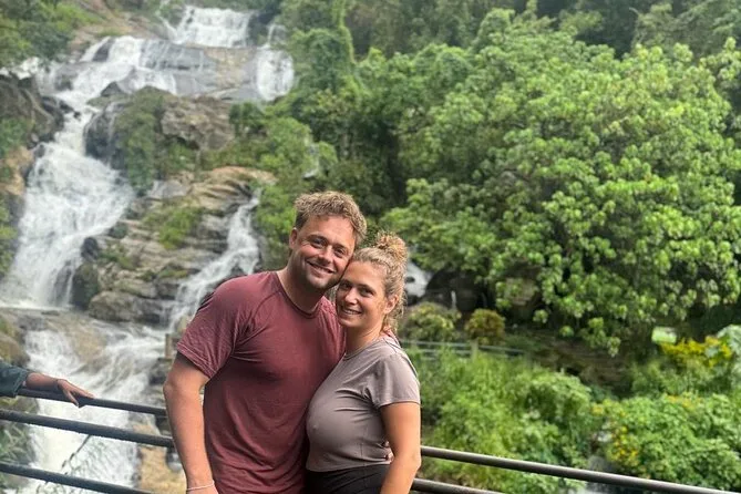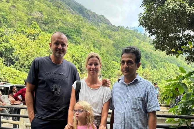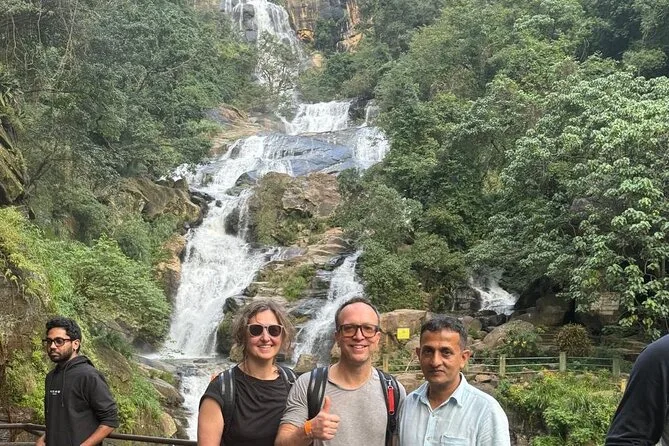 Weiter ging’s zum Little Adam’s Peak. Der Pfad schlängelte sich durch Teeplantagen, so nah, dass man die Blätter fast streifen konnte (habe ich natürlich gemacht). Vor uns rannten ein paar einheimische Kinder um die Wette – sie überholten uns gleich zweimal und lachten dabei jedes Mal. Die Aussicht von dort oben… ich denke noch oft an diesen Sonnenfleck, der langsam durchs Tal wanderte. Danach besuchten wir die Rawana Falls – ein mächtiger Wasserfall, dessen kühle Gischt mein Gesicht erfrischte. Sunil erzählte eine alte Legende von einer entführten Prinzessin, die sich hinter den Wasserfällen versteckt haben soll; er schwor, es sei wahr, zwinkerte mir aber dabei schelmisch zu, als wäre er sich nicht ganz sicher.