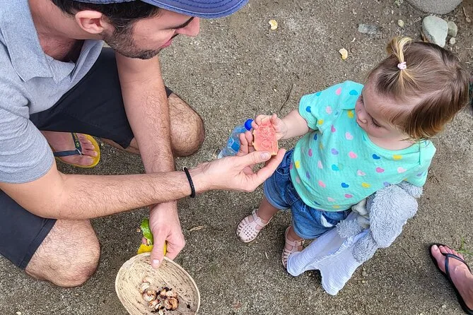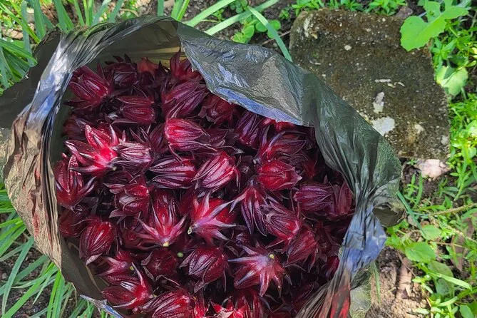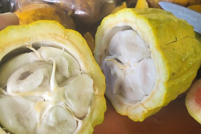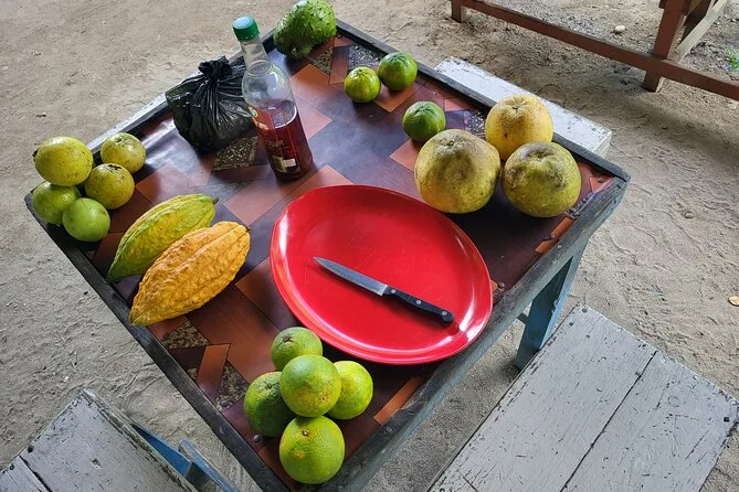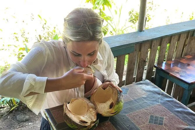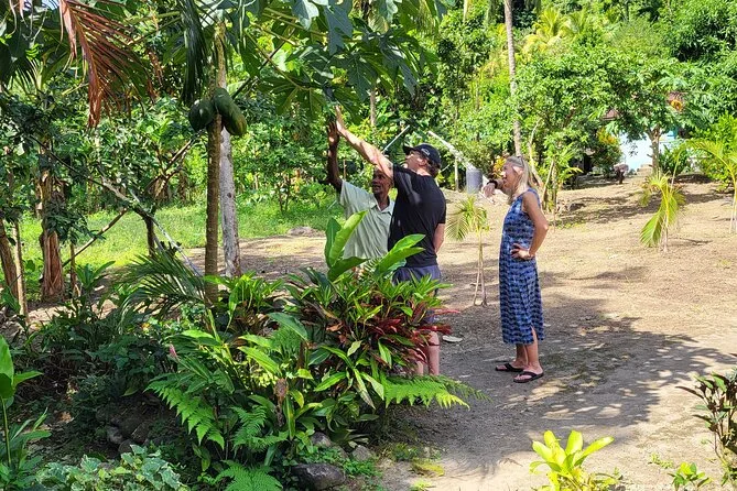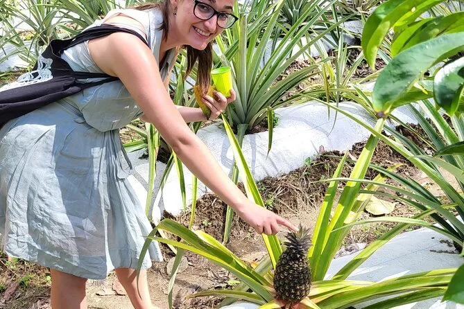 Du überquerst einen Bach zur Farm, probierst frisch geerntete Früchte und röstest Cashews über offenem Holzfeuer.