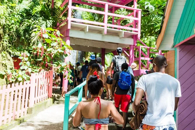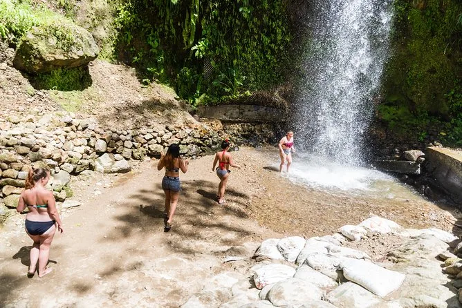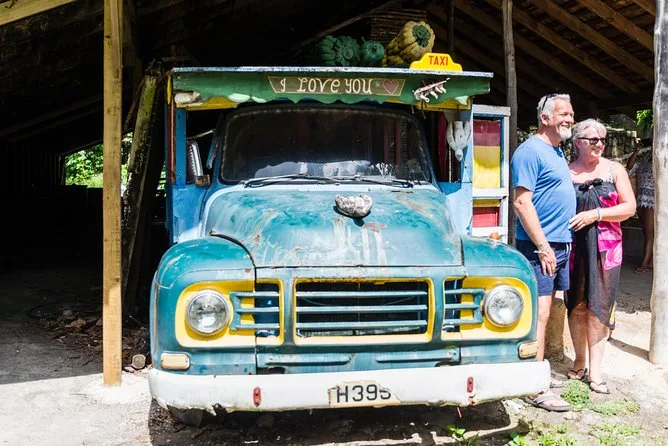 Die Tour führt zu den Pitons, Soufriere Bay, Toraille Wasserfall, Sulphur Springs Park (mit optionalem Schlammbad oder Vulkan-Tour), Morne Coubaril Estate zum Mittagessen, Anse Cochon zum Schwimmen und Schnorcheln sowie durch die Marigot Bay.