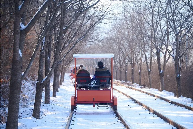 Dein Tag beinhaltet den Hin- und Rücktransfer ab zentralem Seoul mit Abholoptionen am frühen Morgen, alle Eintrittskarten für Eobi Ice Valley, Fährtickets für Nami Island, die Fahrt im Gangchon Rail Park und den nächtlichen Einlass im Garden of Morning Calm – alles begleitet von einem freundlichen lokalen Guide, der für einen reibungslosen Ablauf sorgt, bis du abends zurück bist.