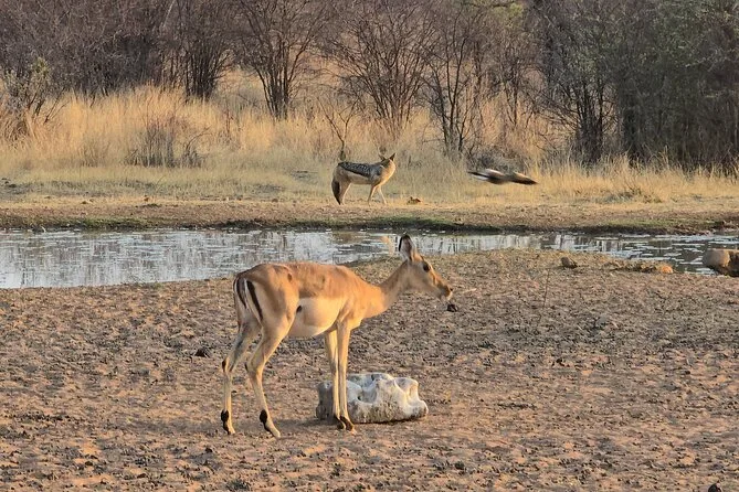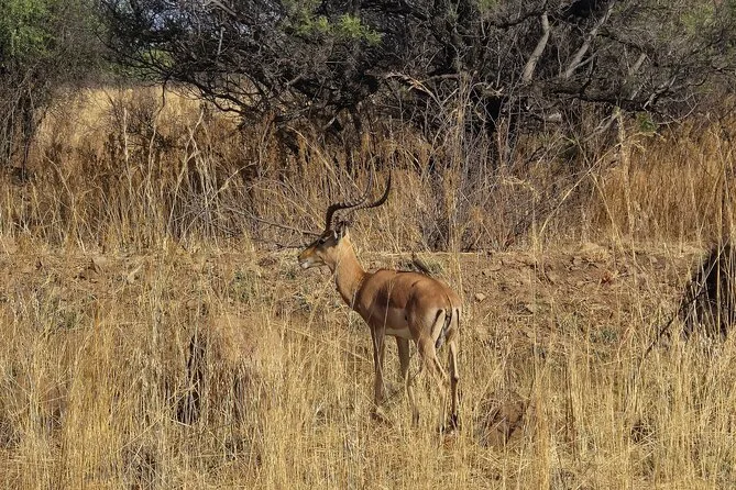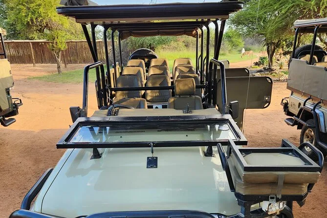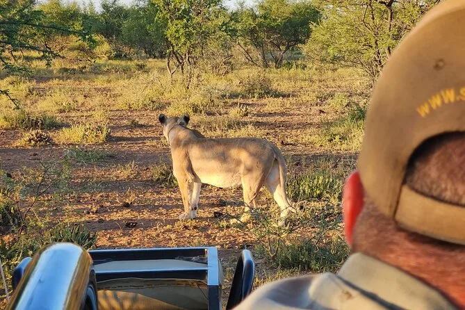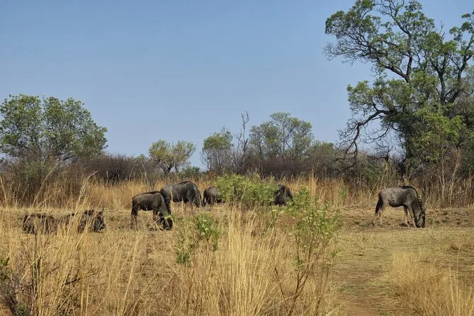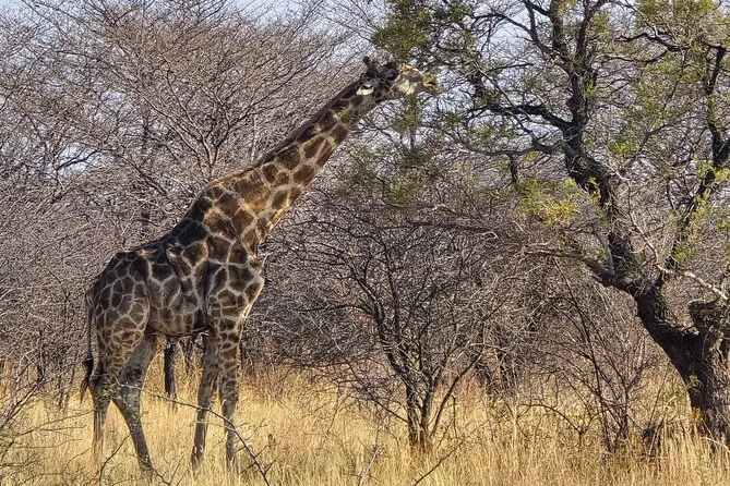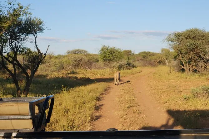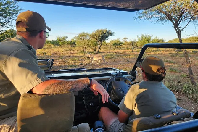 Dein Tag beinhaltet die Abholung und Rückfahrt im klimatisierten Minivan von Johannesburg oder Pretoria (oder O.R. Tambo Flughafen), alle Transfers im Dinokeng Game Reserve im offenen 4x4 Truck mit einem erfahrenen Ranger, dazu Wasserflaschen und Snacks während der Pause unter den Bäumen, bevor es zurückgeht.