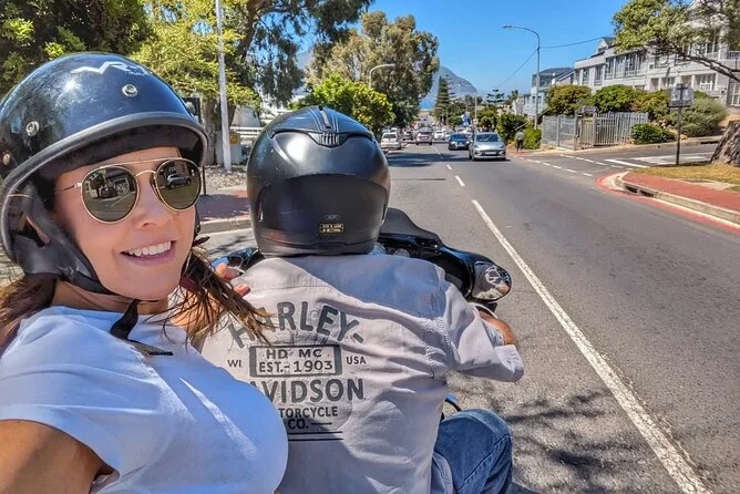 Du sitzt hinten auf einer klassischen Harley Davidson mit einem lokalen Fahrer und fährst Kapstadts dramatische Küste entlang, hältst in kleinen Orten zum Kaffee und spürst jede Brise vom Meer. Freu dich auf Spaß mit deinem Guide, Helm inklusive, flexible Tourlängen und ehrliche Momente, die lange nachklingen.