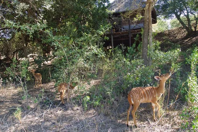 Dein Erlebnis umfasst die Abholung vom Hotel oder Flughafen Johannesburg mit klimatisiertem Minivan; zwei Übernachtungen (eine im eigenen Bad-Chalet bei Tremisana Lodge und eine im Baumhaus oder Stelzenchalet); geführte Sonnenuntergangsfahrt im Motlala Game Reserve; Ganztagessafari im offenen Fahrzeug im Kruger Nationalpark; Sonnenaufgangs-Buschspaziergang mit bewaffnetem Ranger; Besuch der Three Rondavels im Blyde River Canyon; sowie alle Parkeintrittsgebühren und Steuern vor der Rückfahrt nach Johannesburg.