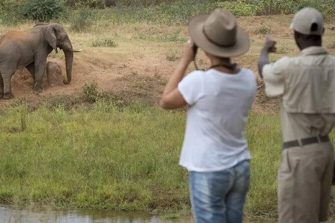 Bei Buffelsdrift kannst du Elefanten auf den Fahrten sehen; ein optionaler Elefantenspaziergang ist gegen Aufpreis möglich.