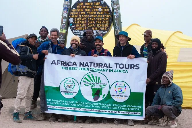 Der höchste Punkt ist der Uhuru Peak auf dem Kilimanjaro.