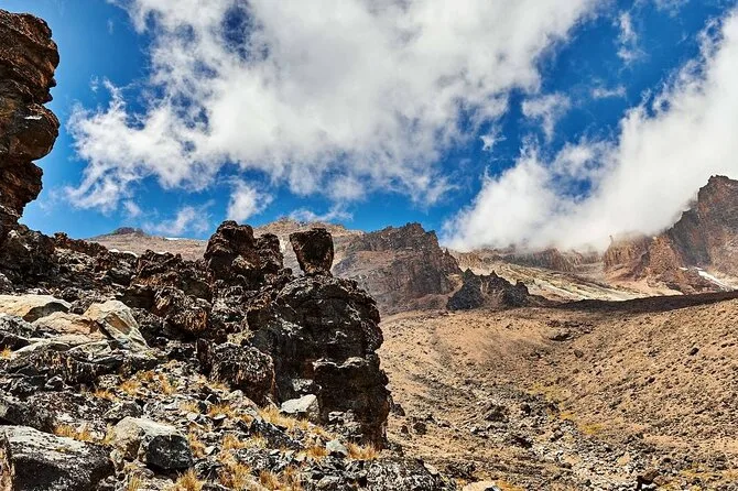 Am nächsten Morgen im Shira Camp war meine Wasserflasche über Nacht komplett gefroren (darauf hatte mich keiner vorbereitet), und die Luft brannte in meiner Nase. Die Sonne stieg schnell über das Plateau, und plötzlich sah man die Gletscher des Kibo in weiter Ferne – so nah zum Greifen, und doch unerreichbar. Der Aufstieg zum Lava Tower war hart; überall Felsen, und mein Kopf begann auf halber Strecke zu pochen. Joseph merkte es sofort und sagte immer wieder „Pole pole“ – langsam, langsam. Am Abend im Barranco Camp saß ich einfach vor meinem Zelt und starrte auf die Barranco-Wand im seltsamen goldenen Licht. Ich sprach kaum, jeder schien in seinen eigenen Gedanken versunken.
