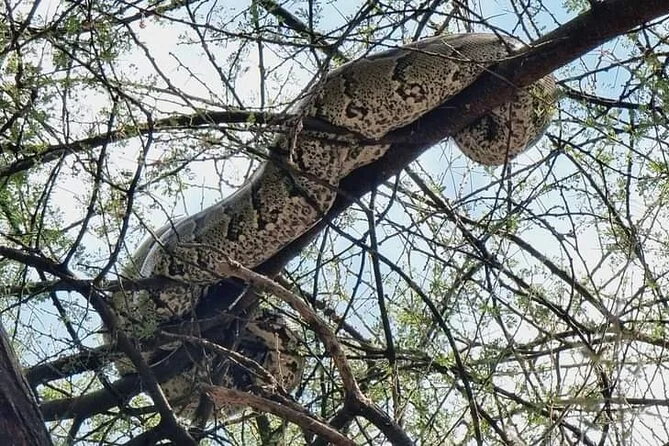 Am nächsten Morgen starteten wir früh in Richtung Tarangire Nationalpark. Die Fahrt dauerte etwa zwei Stunden – genug Zeit, um am Straßenrand lokale Händler zu entdecken, die Mangos verkauften. Kaum hatten wir Tarangire betreten, waren überall Elefanten zu sehen. Nicht nur einer oder zwei – eine ganze Parade von ihnen schlenderte an uralten Baobabbäumen vorbei. Unser Guide Joseph zeigte uns eine Gruppe Giraffen, die an Akazienblättern knabberten, und erklärte, wie sich der Park in der Trockenzeit komplett verändert, wenn die Tiere sich am Fluss versammeln. Am späten Nachmittag erreichten wir das Tarangire Kuro Treetops Lodge – ich schlief tief und fest unter Moskitonetzen, während in der Ferne Hyänenrufe zu hören waren.