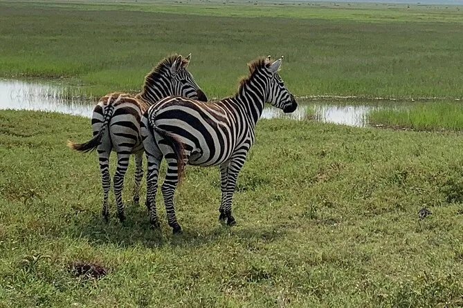 Du wirst wahrscheinlich Wildebeest-Herden mit Kälbern, Löwen, Geparden, Hyänen, Elefanten, Giraffen, Zebras, Flusspferde und eventuell schwarze Nashörner im Ngorongoro-Krater sehen.