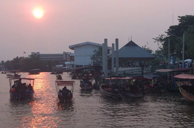Dein Tag startet mit Hotelabholung im Zentrum Bangkoks (Rückfahrt zum MBK Center), einer klimatisierten Fahrt aus der Stadt, einem freundlichen lokalen Guide, der dich sprachlich und kulinarisch begleitet, sowie einer 30-minütigen Paddelbootfahrt durch die lebhaften Kanäle des Damnoen Saduak Floating Market. Anschließend hast du Zeit, den Markt zu Fuß zu erkunden und nach Herzenslust zu snacken.