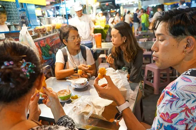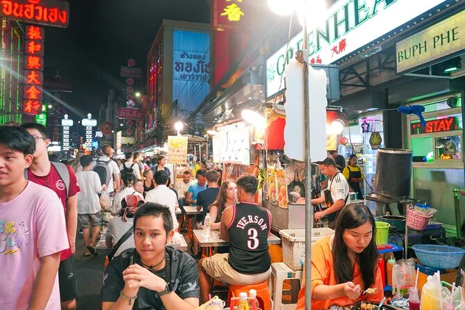 Erkunde Bangkoks Chinatown bei Nacht mit einem lokalen Guide, koste über 15 Gerichte von Michelin-Dumplings bis Mango Sticky Rice. Freu dich auf lebhafte Märkte, spannende Geschichten und viel Spaß mit neuen Freunden beim Entdecken unbekannter Geschmäcker.