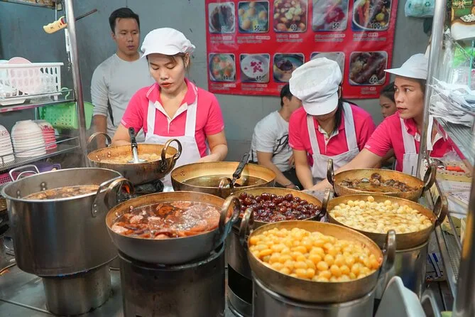 Dein Abend umfasst alle 15+ Verkostungen – genug für ein Abendessen – einen zertifizierten lokalen Guide, der dich durch Bangkoks Chinatown führt, ein Getränk (alkoholisch oder Saft), Fotos von deinem Abenteuer, die du später per E-Mail bekommst, sowie viele Geschichten und Lacher auf den belebten Marktstraßen, bevor es am Hua Lamphong Bahnhof endet.