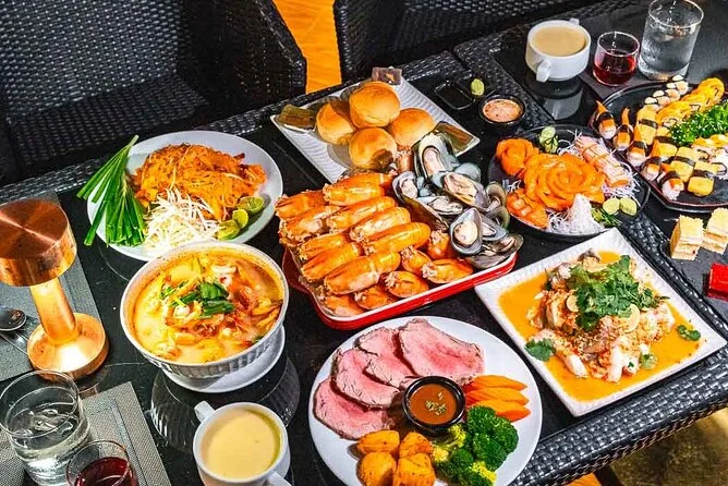 Steig im Herzen Bangkoks zu einer abendlichen Flussfahrt auf dem Chao Phraya ein, genieße ein Buffet mit thailändischen und internationalen Gerichten und Live-Musik. Erlebe, wie Wat Arun und der Große Palast nach Einbruch der Dunkelheit erstrahlen, während Einheimische Geschichten und überraschende Aromen teilen. Locker, besonders – so ein Abend bleibt lange in Erinnerung.