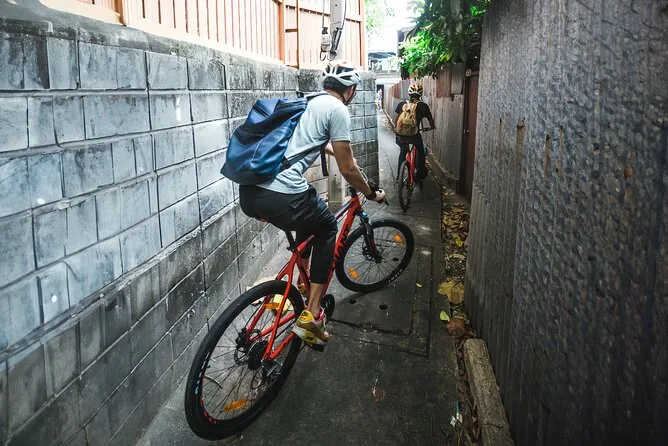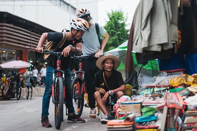 Dein Tag beinhaltet ein Fahrrad mit Helm, eine englischsprachige lokale Führung durch Bangkoks versteckte Gassen und Märkte, alle Eintrittsgebühren und Steuern, ausreichend Wasser für die Hitze, mindestens fünf Street Food Snacks (komm hungrig!) sowie je nach Zeit entweder Mittag- oder Abendessen. Außerdem gibt es eine Gepäckaufbewahrung am Start, damit du den Nachmittag leicht unterwegs bist.